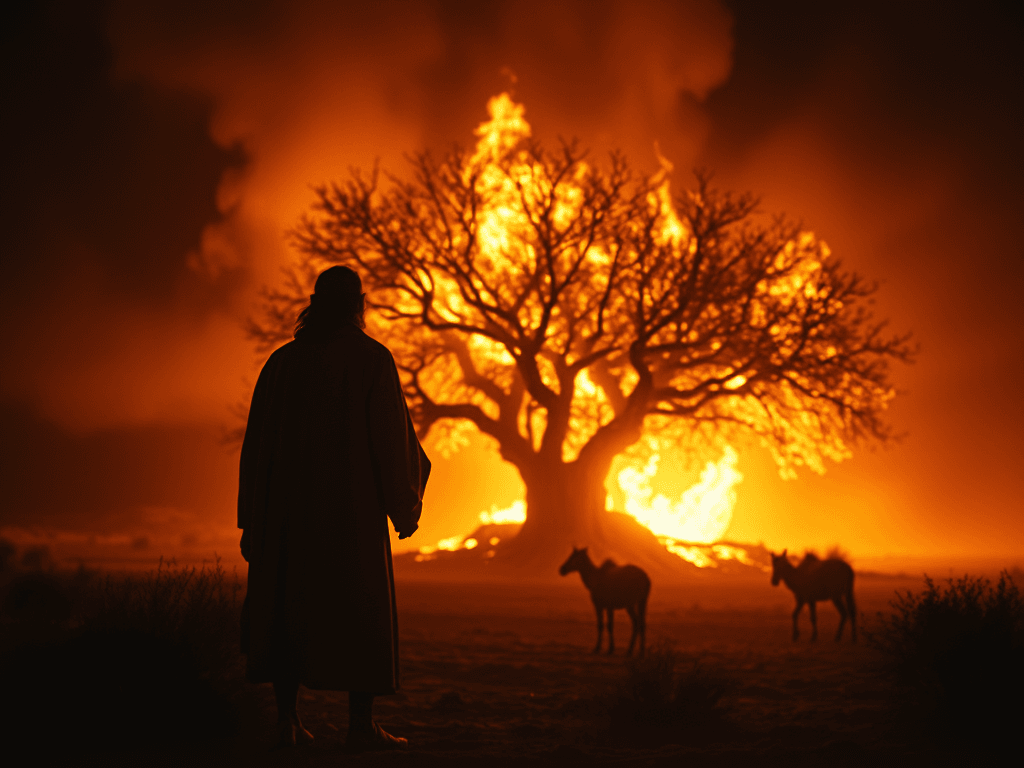 - The Burning Bush: While tending the flocks, Moses encountered an angel of the Lord appearing in the form of a burning bush. Remarkably, the bush was on fire but not being consumed, drawing Moses’ curiosity.